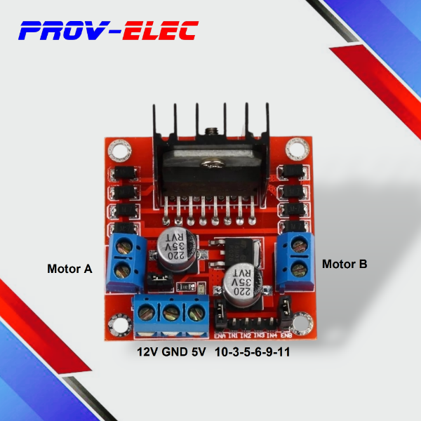 Posee un regulador de voltaje de 5V 78M05, para alimentar la etapa lógica del L298N, sin embargo, cuando la alimentación supera los 12V, se recomienda, utilizar una fuente de 5V externa como fuente de alimentación.