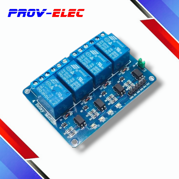 Este pequeño modulo le permitirá controlar mediante sus 4 reles, luces y equipos (Hasta 220V/10A) controlado desde su Arduino, Pic y cualquier placa en general.