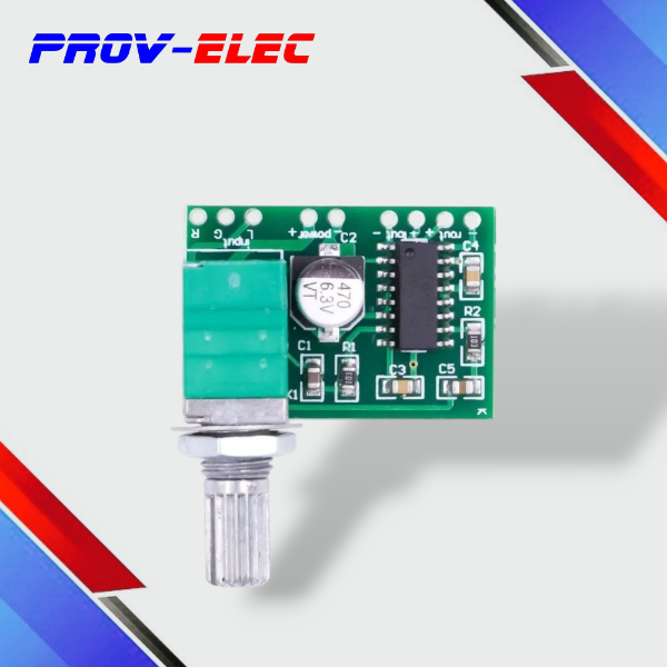 Amplificador clase D de 3W de potencia. Entrega un bajo THD+N lo que permite entregar una buena calidad de sonido. Su arquitectura le permite manejar directamente un par de parlantes, sin necesidad de filtros, reduciendo así el costo del proyecto.