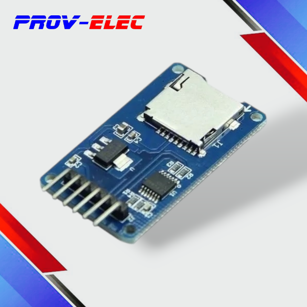 Este módulo permite realizar las conexiones de manera rápida y sencilla al realizar prototipos, esta diseñado para acceder a la memoria SD en modo SPI, por lo que las señales de control se etiquetan con claramente con los nombres de las señales en dicho bus de comunicaciones.