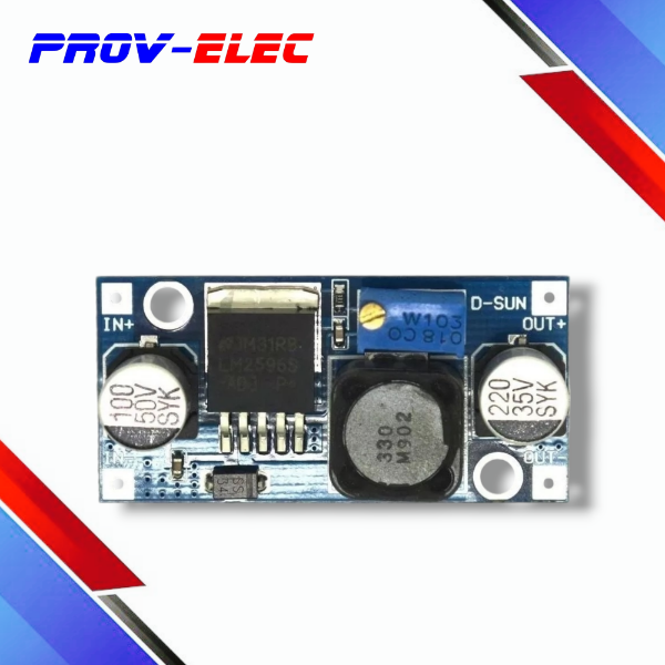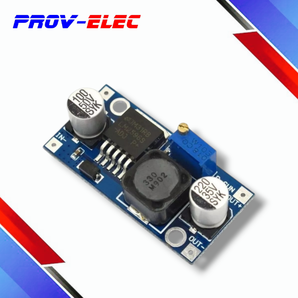 Es una fuente basada en el regulador step-down DC-DC LM2596. Posee un preset multivuelta de alta precisión y es capaz de alimentar una carga de hasta 3A con una alta eficiencia.