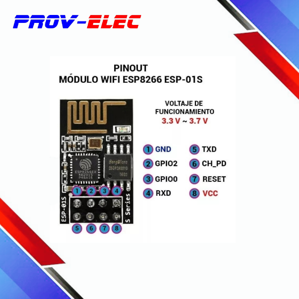 El Modulo WiFi ESP01-S basado en el chip ESP8266 que permite conectar tus proyectos a Internet mediante una red Wifi de forma facil y economica.
