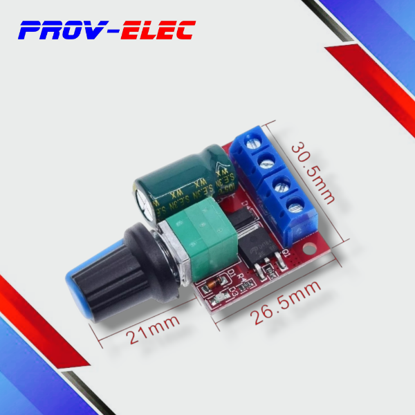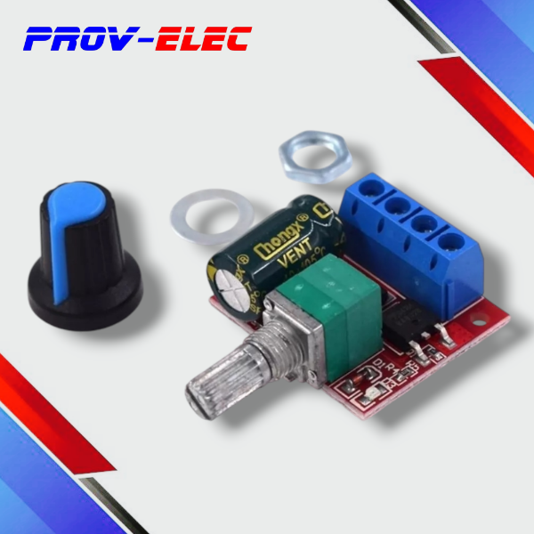 Regulador de velocidad para motores de Corriente Continua PWM con ciclo de trabajo ajustable desde 1% a 100%.